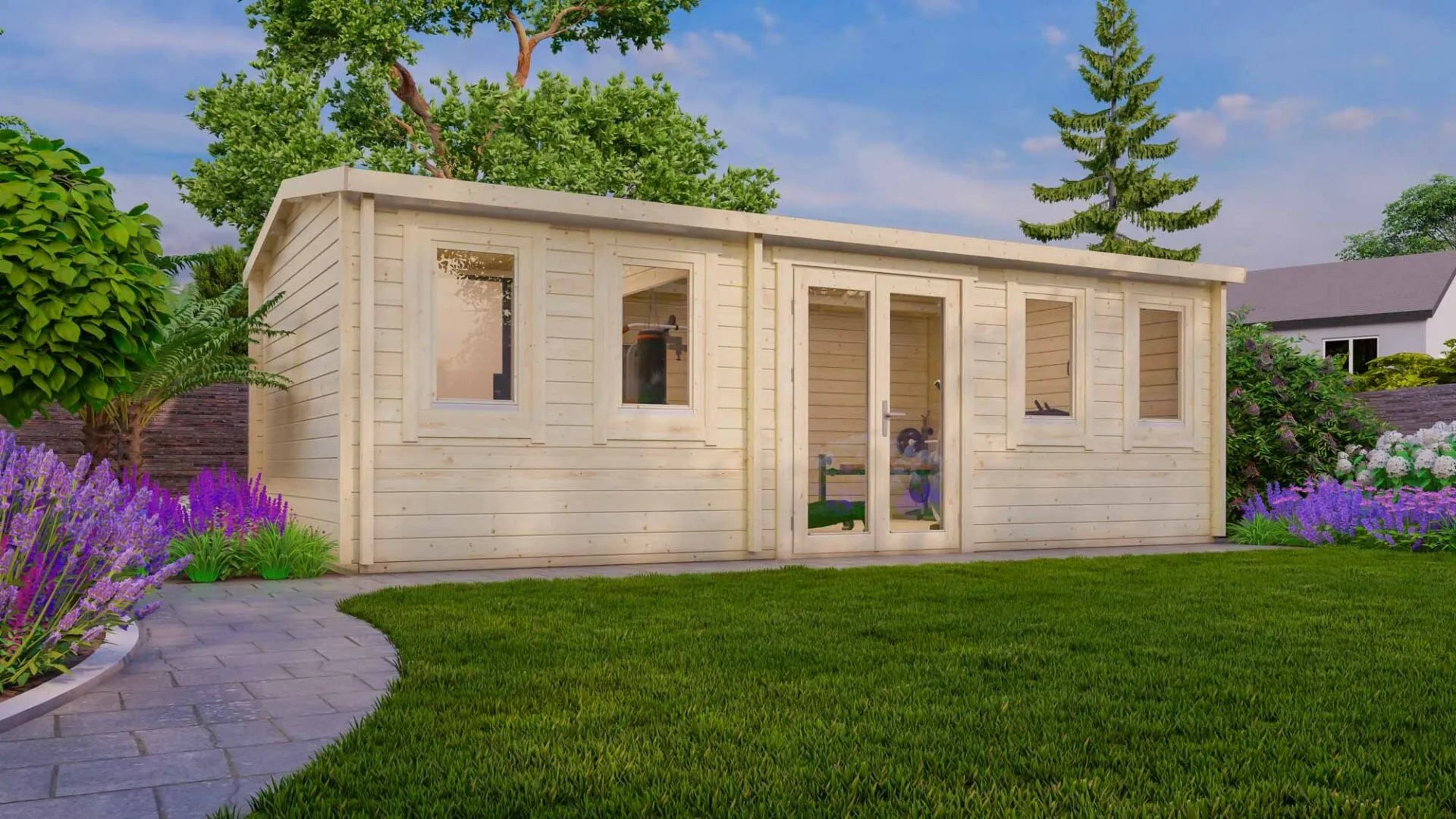 Houten Tuinhuis met Dubbele Deuren – 28m² Blokhut Model Texel | Perfect als Kantoor, Gastenverblijf of Studio