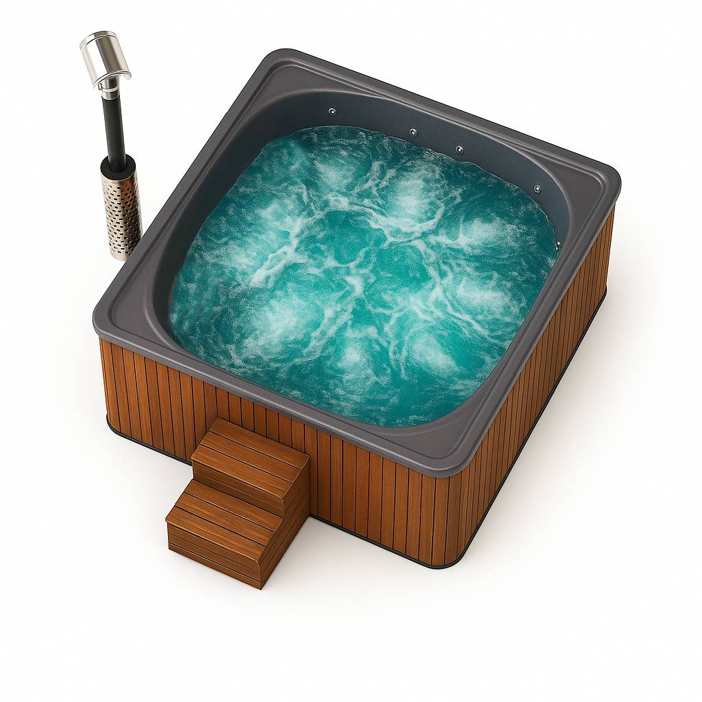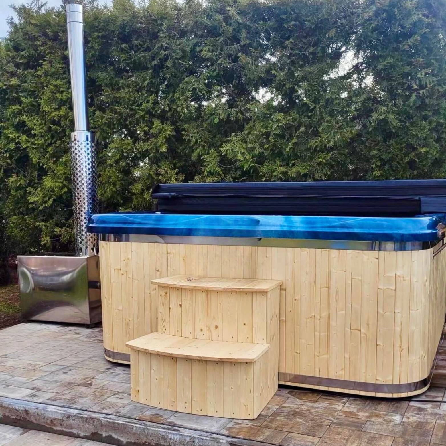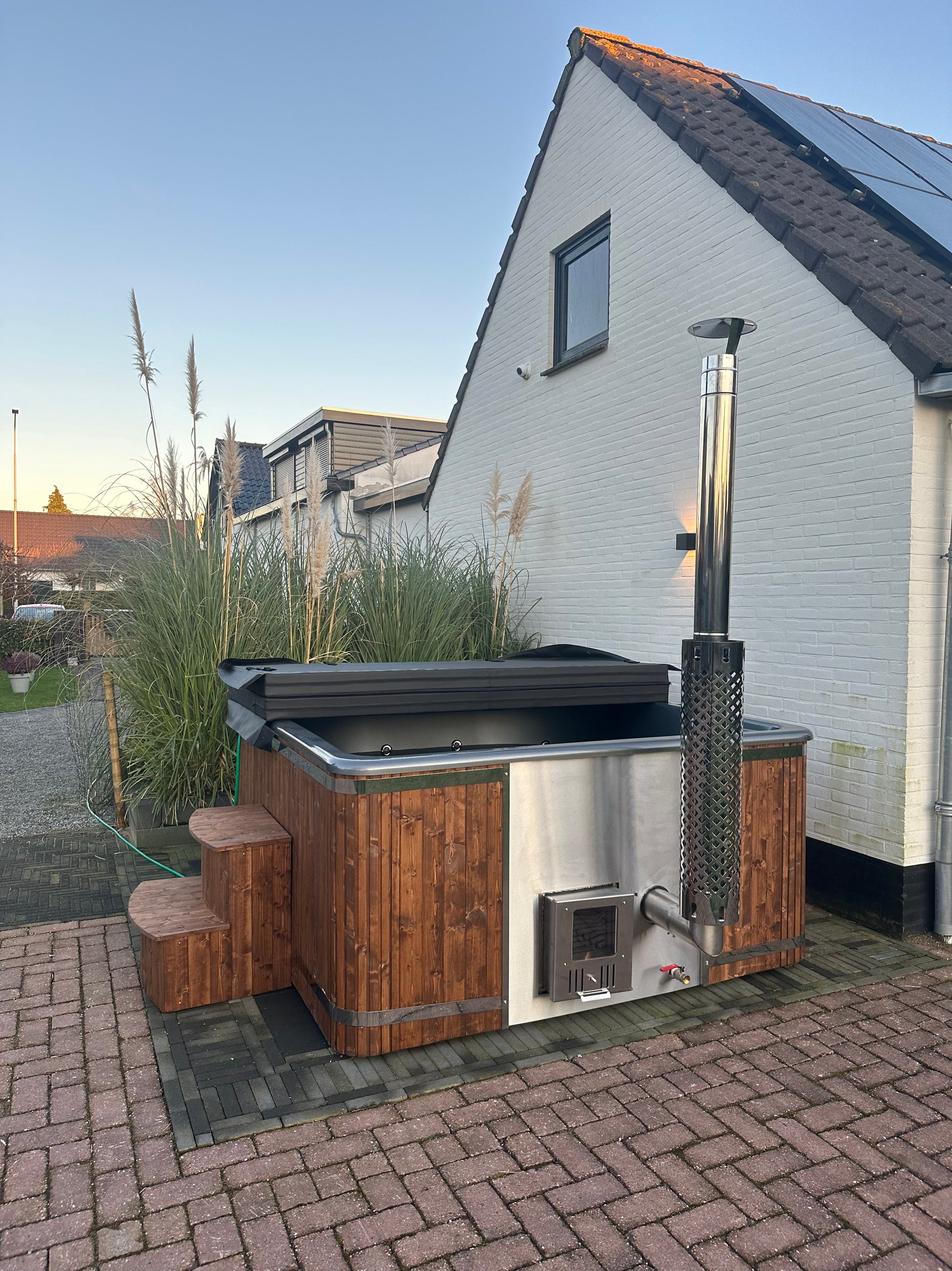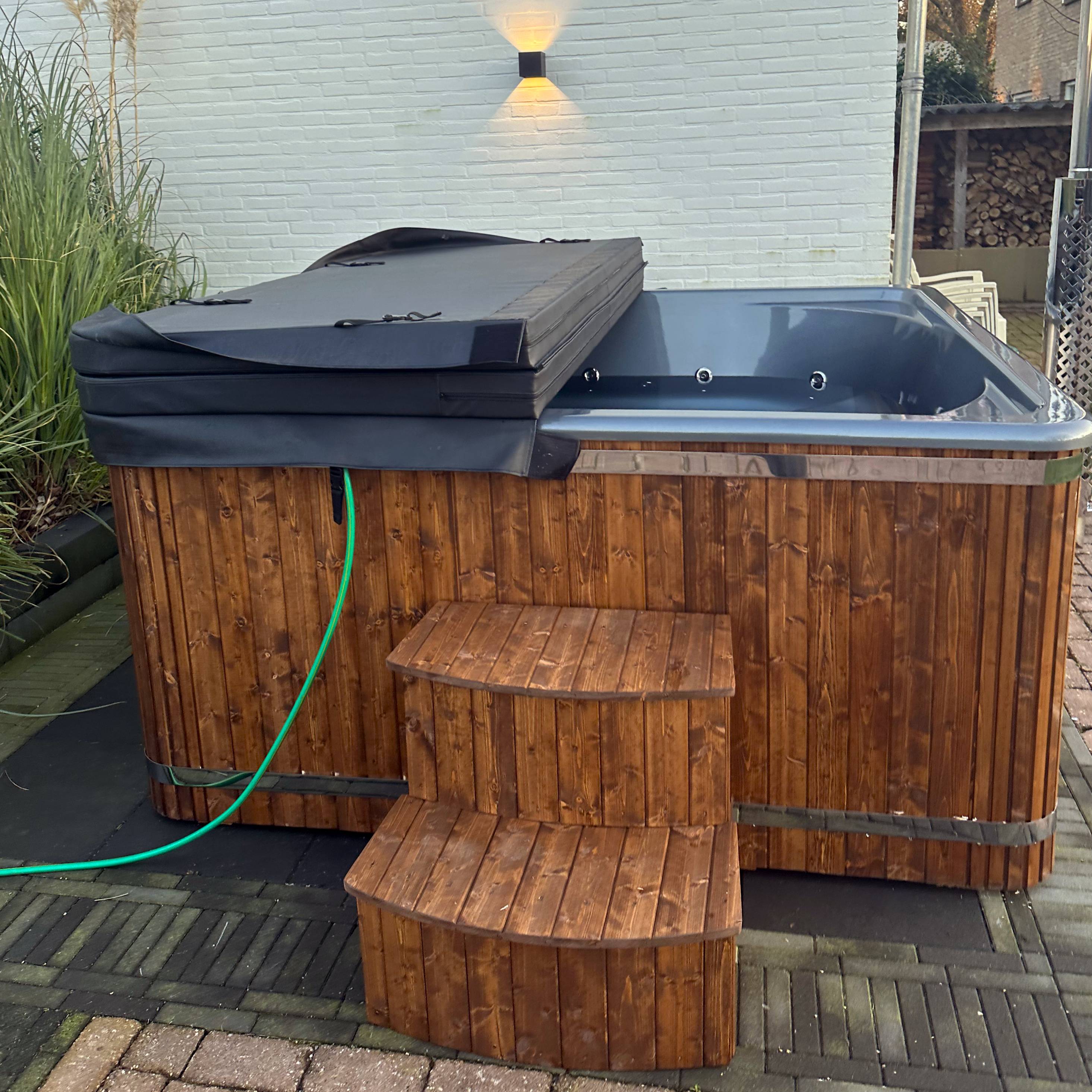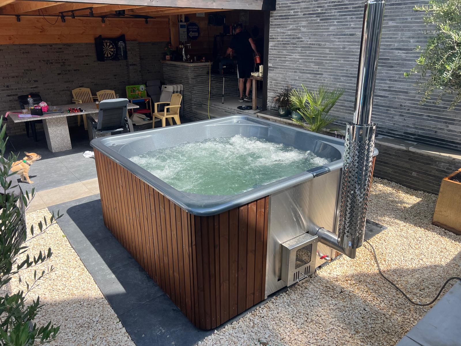 Malmo – Vierkante Luxe Hot Tub met Geïntegreerde Houtkachel - Massagejets, LED-Verlichting, Bubbelsysteem en Vrije Kleurkeuze